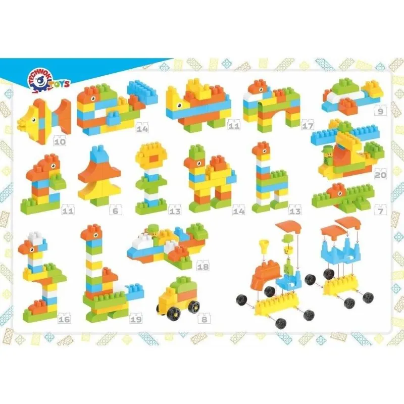 Komplektā ietilpst būvniecības bloki ar noapaļotiem stūriem, arkām, dzīvniekiem, žogiem, logiem un durvīm pasaku pilīm. Jauna liela plāksne šīs sērijas konstrukciju komplektā ir neaizstājams māju un citu arhitektūras formu elements. Tādējādi leļļu māja kļūst izturīgāka, vieglāk pārnēsājama un ērtāk spēlējama. Platforma ar riteņiem – īsts atradums. Varat uzbūvēt automašīnu, vilcienu vai lidmašīnu, un tas noderēs robotu projektēšanā.“Cilvēka” figūra un papildu “acu” attēli uz figūru elementiem ir interesanta iespēja, kas piešķir konstruktoram “dzīvību”. Saliktās zivis un flamingi uzreiz “atdzīvojas”, bērniem ar tiem ir interesantāk spēlēties, un īpaši – sarunāties.Komplekts atbilst visām drošības prasībām, elementi nav ar asām malām un ir bez smaržas. Detalizācijas ir spilgtās krāsās, patīkamas pieskārienam, viegli saliekamas, vienlaikus saliktā konstrukcija ir izturīga un saglabā formu.Komplektā ir 90 interesantas dažādas detaļas čemodānā.