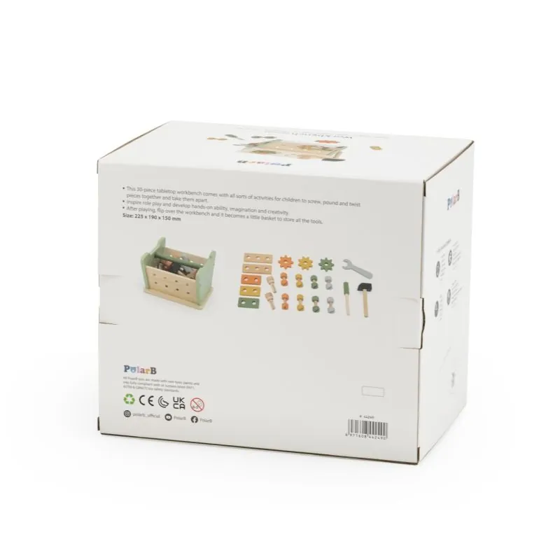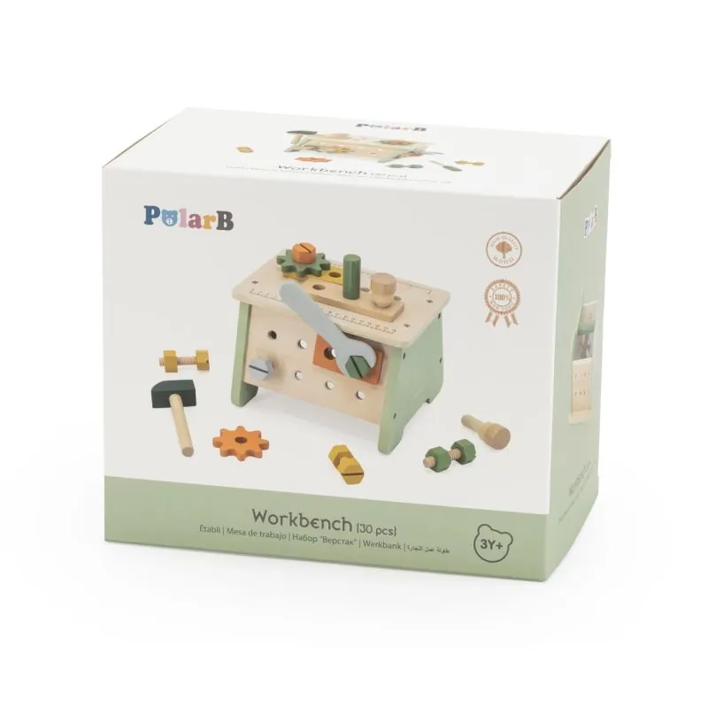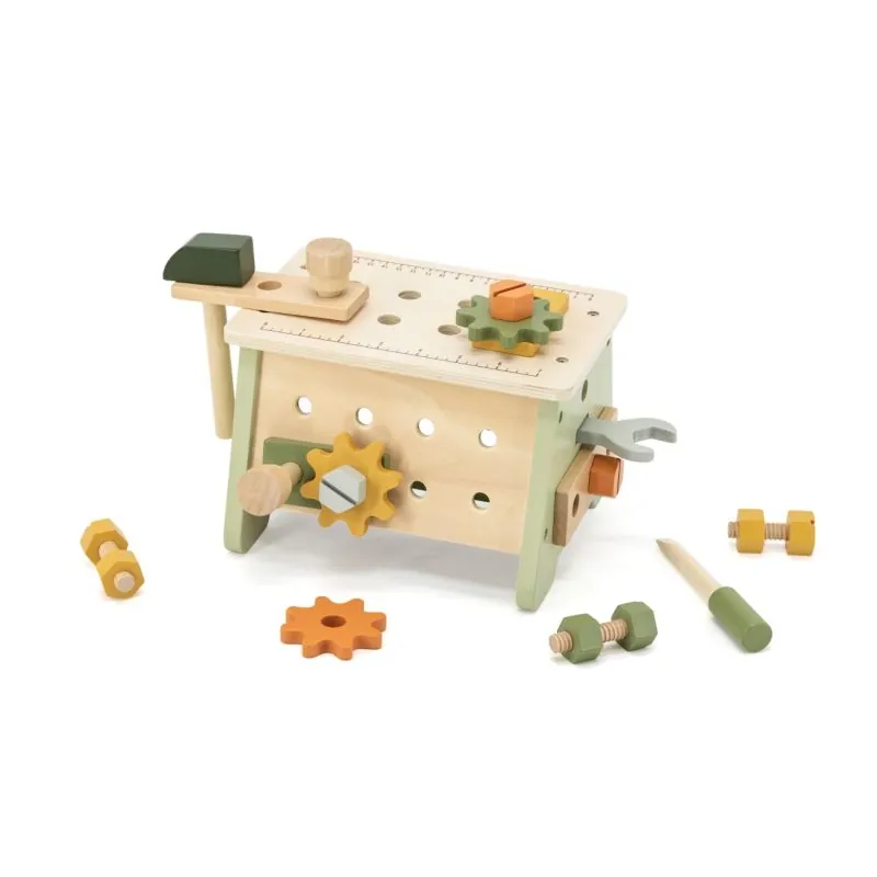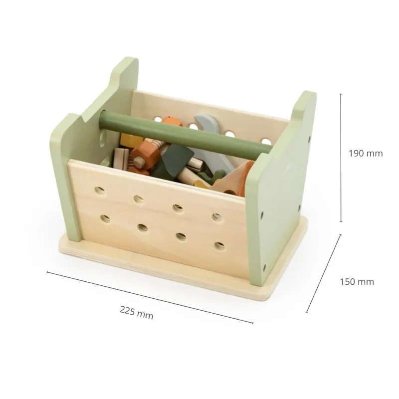 Lielisks koka instrumentu komplekts, kas sastāv no visiem galvenajiem instrumentiem un piederumiem. Piemērots bērniem no 36 mēnešiem.