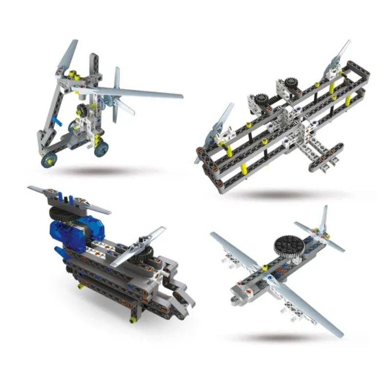 Vairāk nekā 10 modeļu un 200 montāžas daļu, tostarp: stiprinājuma stieņi, plāksnes, skrūves, zobrati, skriemeļi un savienojumi;