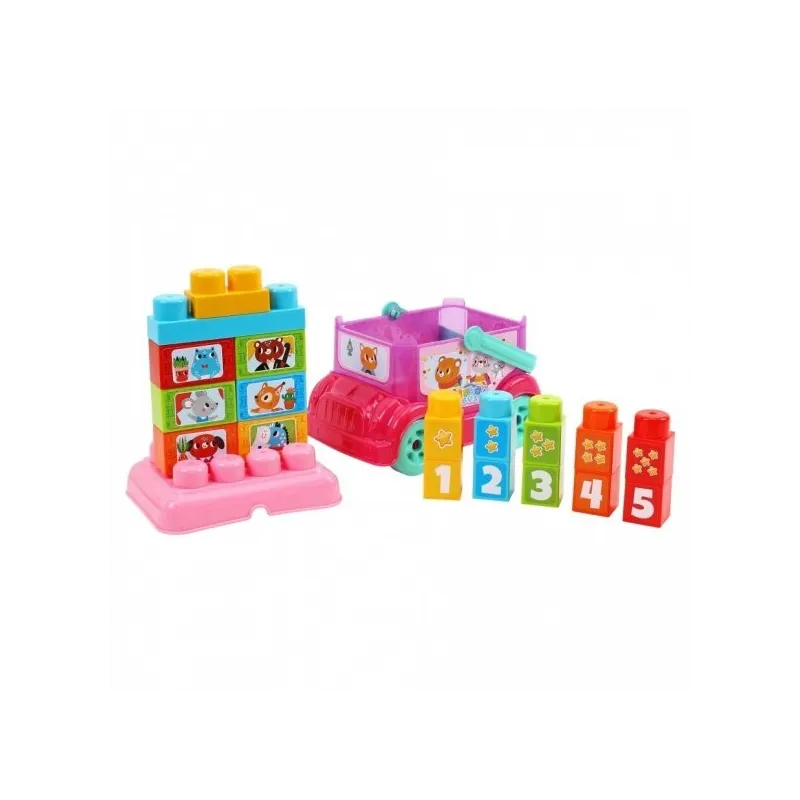 Iekšpusē atradīsiet 18 krāsainus un dažāda veida konstrukcijas elementus, kas lieliski piemēroti mazajām rociņām;