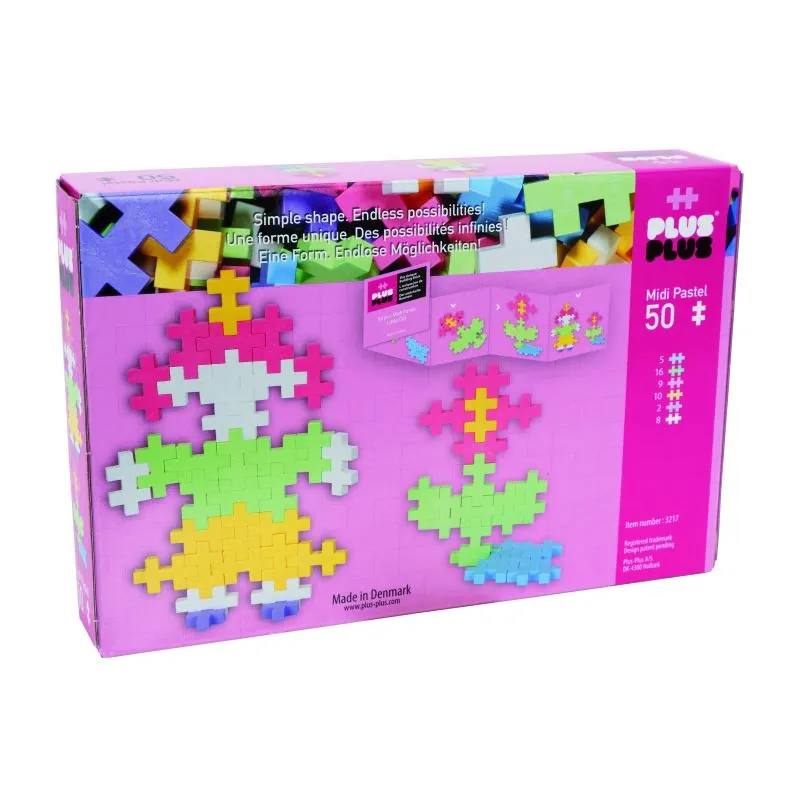 Plus Plus konstruktors, Meitene ar puķīti, Midi pasteļtoņi 50 gab.