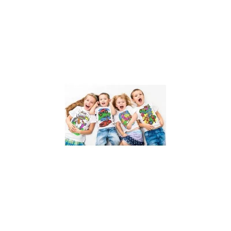 Viena T-krekls - bezgalība dažādu radījumu!Lietošana: krāsot T-kreklu ar komplektā esošajiem flomāsteriem, valkāt, mazgāt un atkal krāsot. Flomāsteri ir mazgājami, netoksiski. Zīmējot novietojiet zem attēla baltu lapu, ja vēlaties, lai krāsas nenotraipītu aizmugurējo daļu.Mazgāt 40 ͦ temperatūrā. Var mazgāt ar citiem baltiem audumiem, krāsas neatstāj pēdas.Flomāsteri var tikt izmantoti zīmēšanai uz citiem audumiem. Sastāvs 100% kokvilna.