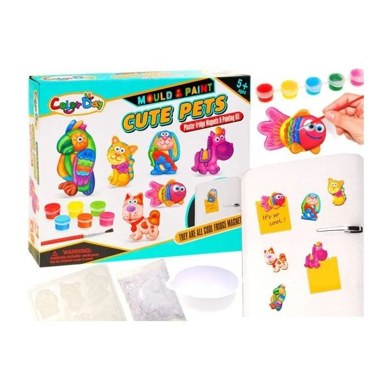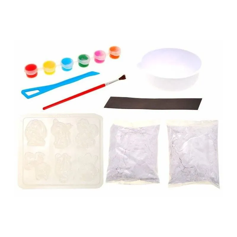 Komplektā ir 6 dažādas krāsas, dzīvnieku formēšanas rīks, krāsas un magnētiskās lentes. Bērni varēs izveidot magnētiņus savās iecienītajās krāsās. Veicinās domāšanu un attīstīs pacietību.