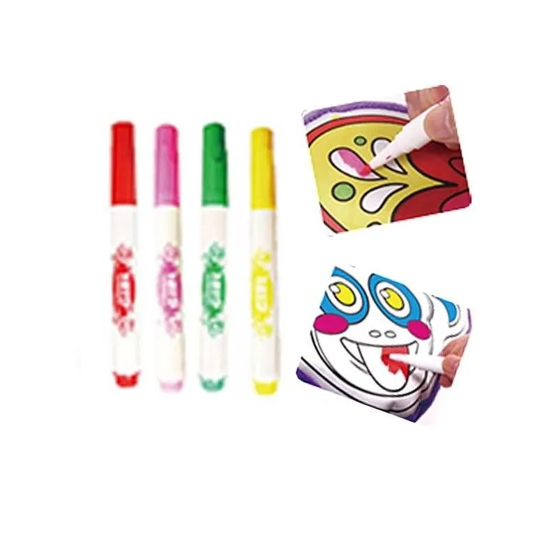 Komplektā ietilpst: kaķīša formas spilventiņš, 4 dažādu krāsu marķieri.