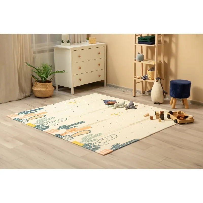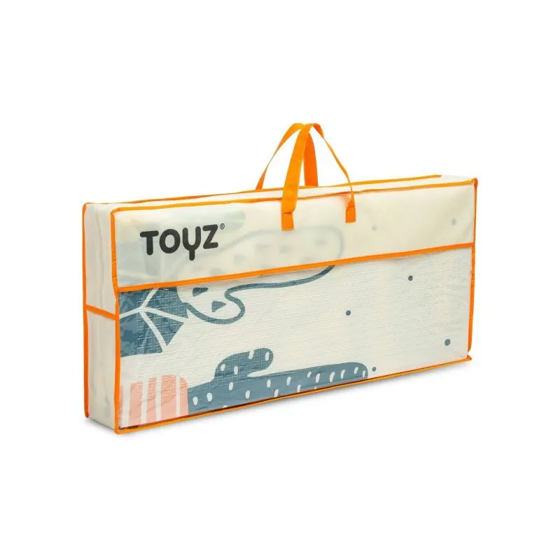 2 unikāli zīmējumi katrā pusē.Mīkstas un izturīgas putas nesaburzās, tāpēc paklājiņš kalpo ilgi.Liela spēļu laukums 180x200 cm.Piemērots bērniem no pirmajām dzīves dienām.Nelielas iespiešanās dēļ paklājiņš ir neslīdošs un pozitīvi ietekmē bērna sensorisko attīstību.1 cm biezums nodrošina pietiekamu izolāciju no grīdas, un ūdensizturīgā konstrukcija ļauj to izmantot pat ārā.Drošs alerģiskiem cilvēkiem - neuzsūc mitrumu un smakas.Bez kaitīgām vielām: PVC, ftalātiem, formamīda, fenoliem un formaldehīda.Izglītojošais paklājiņš Toyz ir ne tikai droša spēļu telpa bērnam, bet arī lielisks veids, kā pavadīt laiku kopā ar vecākiem.Divi unikāli zīmējumi no abām pusēm.Lieliski piemērots formu, dzīvnieku un krāsu apguvei.Soma ar rokturi ļauj ērti uzglabāt un transportēt paklājiņu.Viegla tīrīšana – vienkārši noslaukiet ar mitru drānu.