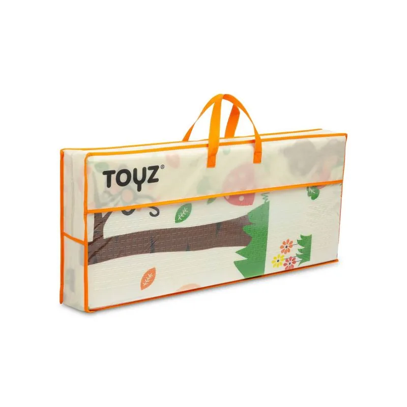 2 unikāli izdrukas katrā pusē.Mīkstas un izturīgas putas nesaburzās, tāpēc paklājiņš kalpo ilgi.Liela spēļu laukums 180x200 cm.Piemērots bērniem no pirmajām dzīves dienām.Nelielā iespaida dēļ paklājiņš ir neslīdošs un pozitīvi ietekmē bērna sensorisko attīstību.1 cm biezums nodrošina pietiekamu izolāciju no grīdas, un ūdensizturīgā konstrukcija ļauj to izmantot pat ārā.Drošs alerģiskiem cilvēkiem - neuzsūc mitrumu un smakas.Bez kaitīgām vielām: PVC, ftalātiem, formamīda, fenoliem un formaldehīda.Izglītojošais paklājiņš Toyz ir ne tikai droša spēļu telpa bērnam, bet arī lielisks veids, kā pavadīt laiku kopā ar vecākiem.Divi unikāli nospiedumi abās pusēs.Lieliski piemērots formu, dzīvnieku un krāsu apguvei.Soma ar rokturi ļauj ērti uzglabāt un transportēt paklājiņu.Viegla tīrīšana – vienkārši noslaukiet ar mitru drānu.