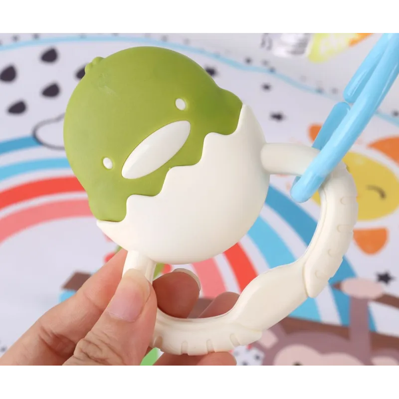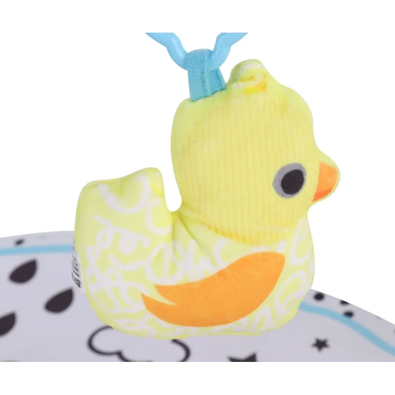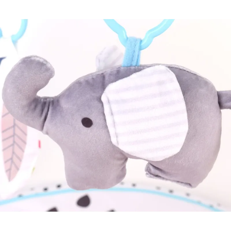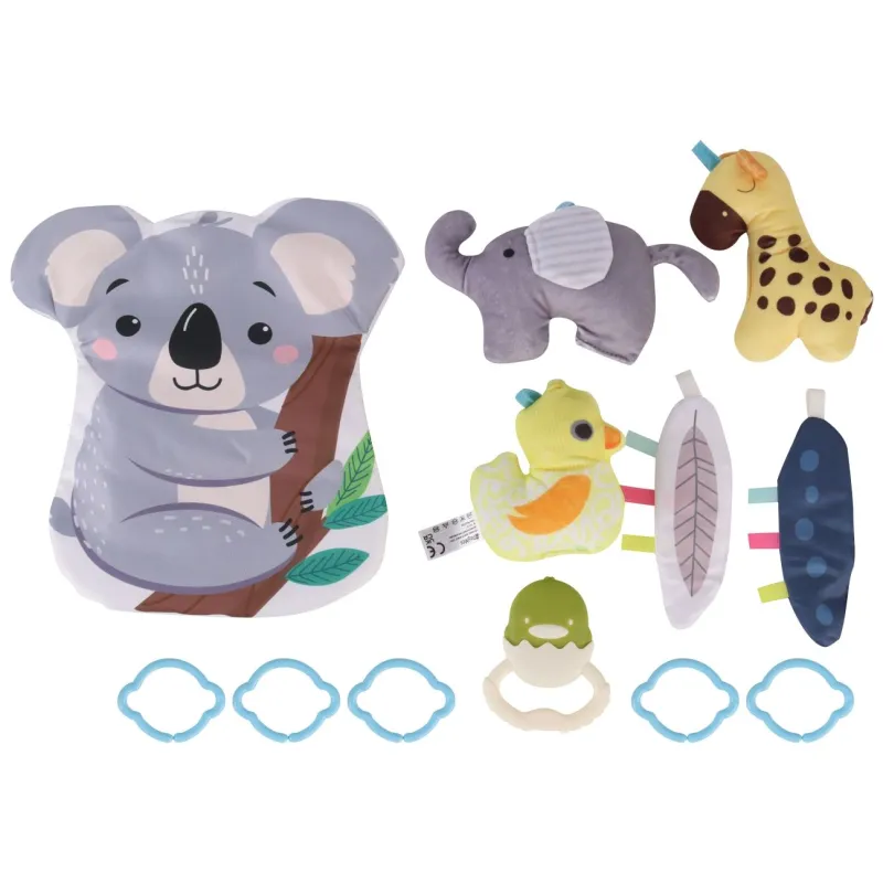 4 izglītojoši piekariņi: mīksts zilonis, žirafe, pīle, grauzulis un sensorās lapas;
