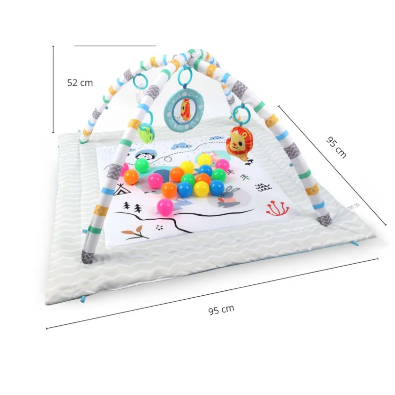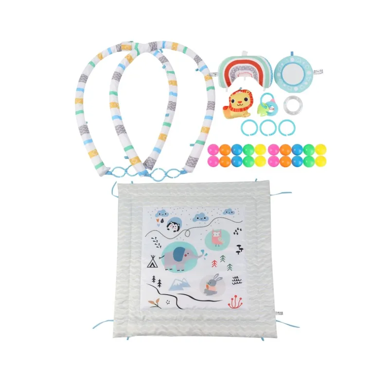 „TinyMini bērnu spēļu paklājiņš ir lielisks risinājums vecākiem, kuri meklē krāsainu, mīkstu un stimulējošu telpu savam mazulim spēlēties un atpūsties. Paredzēts bērniem no pirmajām dzīves dienām, tas veicina sensorisko un motorisko attīstību, pateicoties drošiem materiāliem un attīstošo rotaļlietu komplektam.