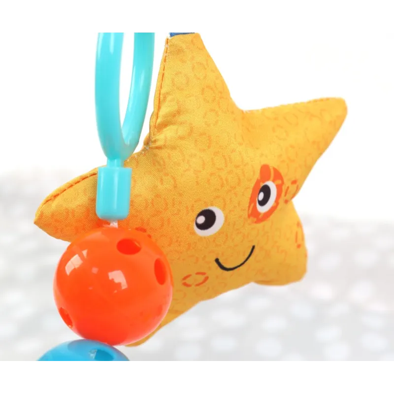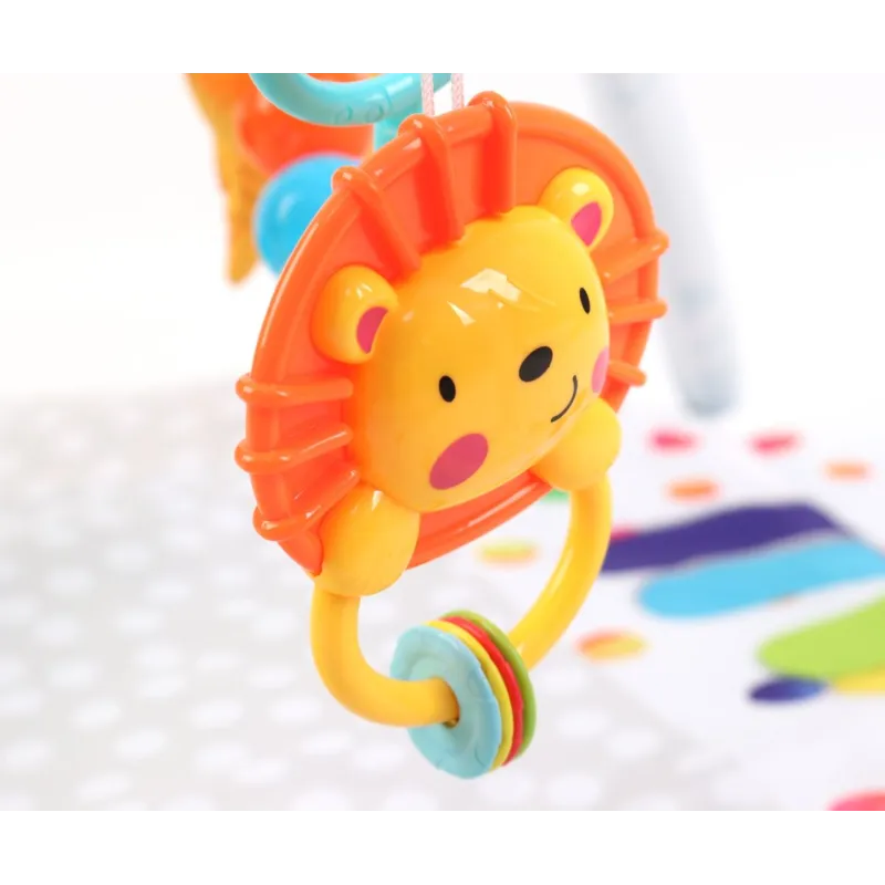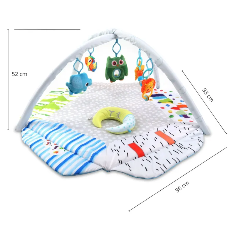 TinyMinpasaulis ir krāsains spēļu paklājiņš, kas palīdz jūsu bērnam attīstīties caur spēli un mijiedarbību. Tas palīdz viņam iemācīties uztvert un atpazīt formas. Veicina aktīvu un radošu spēlēšanos. Kuloni attīsta redzes un taustes sajūtas, kā arī motorisko koordināciju.