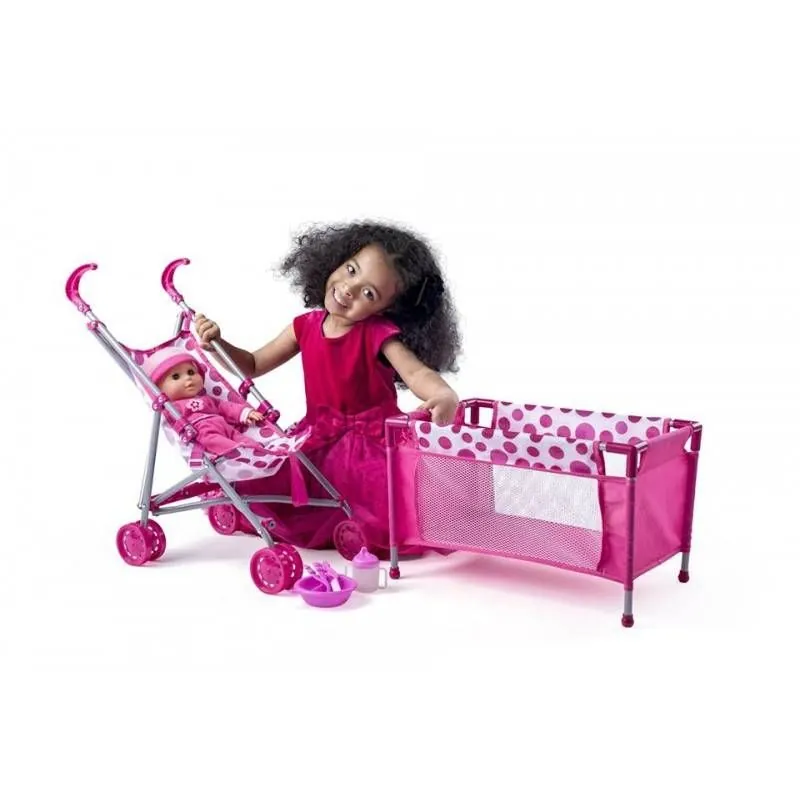 Bērnu leļļu ratiņi ar lellīti un manēžu