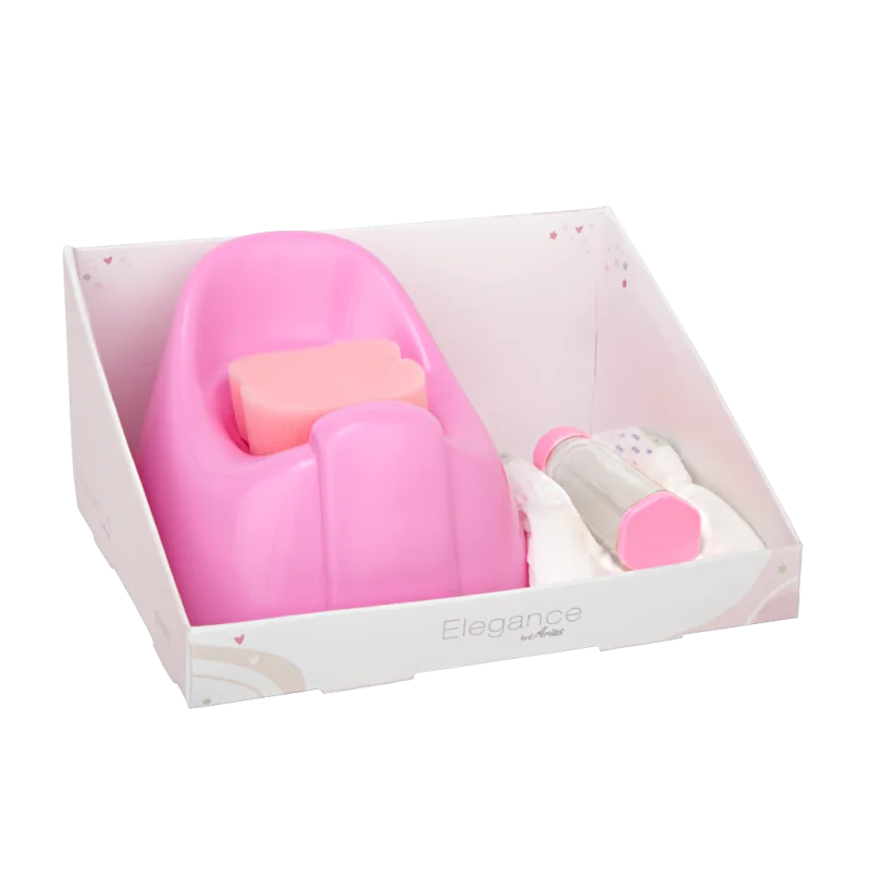 Komplektā ietilpst nakts pods, sūklis, autiņbiksītes, pudelīte.Autiņbiksītes piemērotas lellēm no 38-50 cm.Kastes izmēri: 23x18x11.50 cm.Paredzēts bērniem no 3 gadu vecuma.Produkts sertificēts ar CE zīmi.Izcelsmes valsts: Spānija.