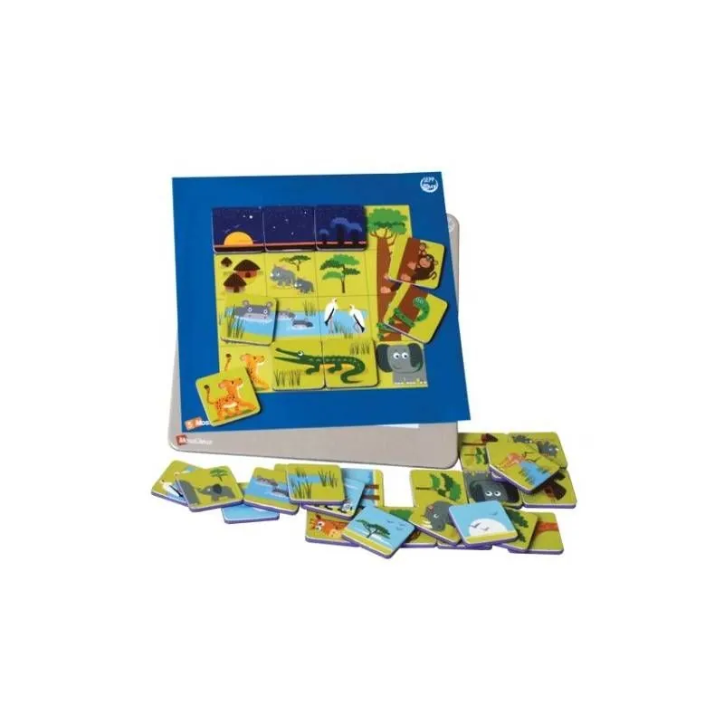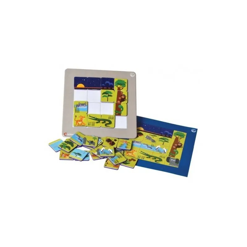 Uz speciālas, kvadrātiņiem iezīmētas dēlītes bērni varēs likt magnētiņus ar safari iemītniekiem. Mazie varēs izmantot paraugu un uz tā likt magnētiņus, bet lielāki bērni varēs paši veidot mozaīku no magnētiņiem.