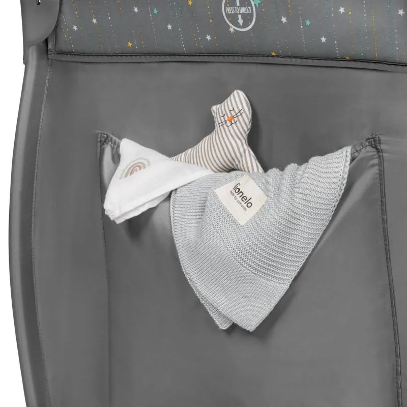 Lionelo Flower 2in1 manēžas gultiņa, pelēks...