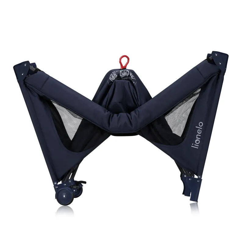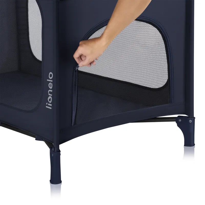 Lionelo Jasmin Easy Fold divstāvu manēža, zili jūras tumši zila