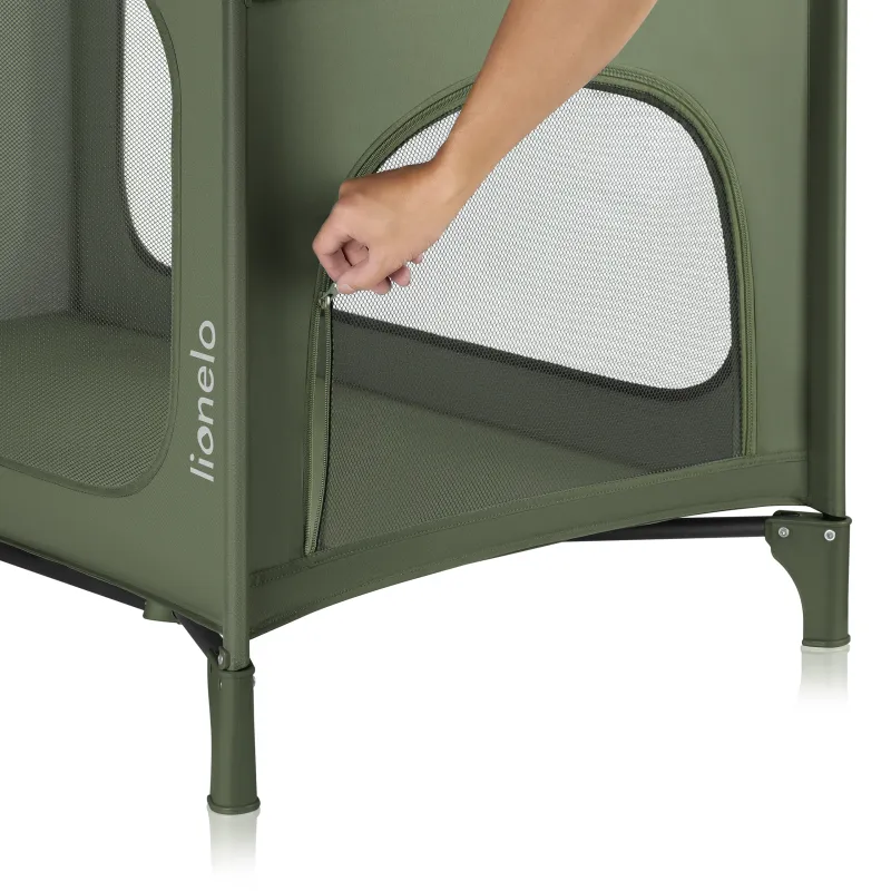 Lionelo Jasmin Easy Fold dviejų aukštų maniežas, green olive