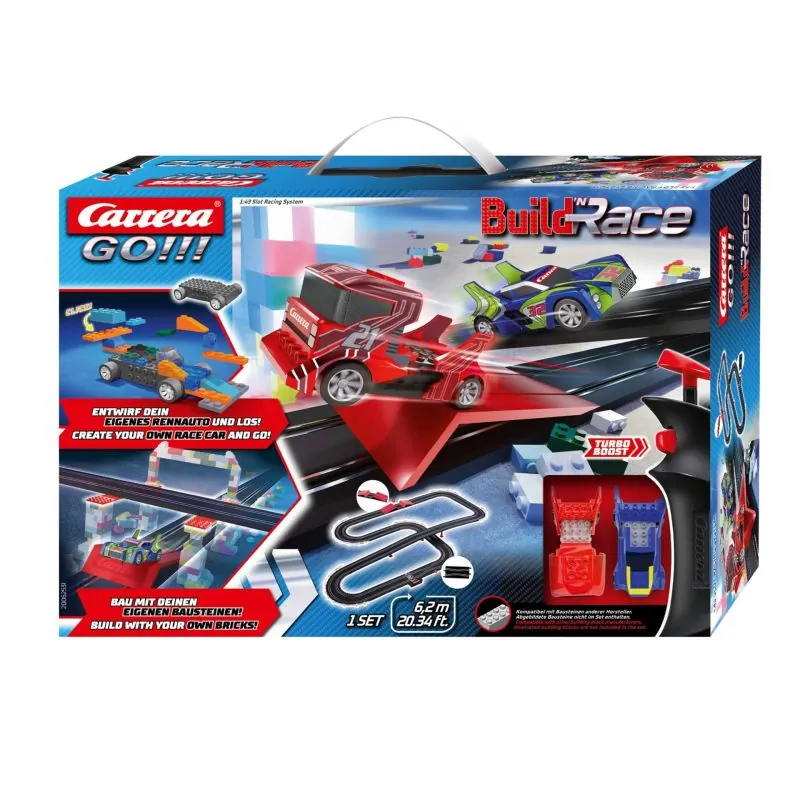 Vispirms būvējiet - tad sacenšaties!Šī trase ir lielisks risinājums ātras braukšanas cienītājiem.Sacīkšu automašīnas un trasi var ātri un viegli uzbūvēt.Zilā sacīkšu automašīna uz trases ceļa ar sakarsušām riepām gaida iespaidīgo sarkano superkravas automašīnu.6,2 metru sacīkšu trase ar garām, ātrām taisnēm, līkumiem un lēciena rampu atver jaunu pašsacīkšu izklaides aspektu. Vadības pultī iebūvētā turbo poga vēl vairāk palielina ātrumu.Ieteicamais vecums no 6 gadiem.