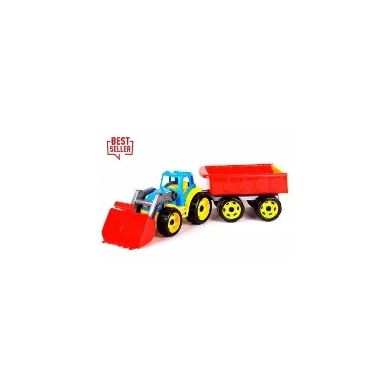 Traktors ar piekabi, paredzēts spēlēšanai gan ārā, gan mājās.