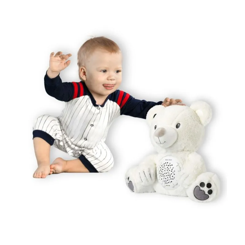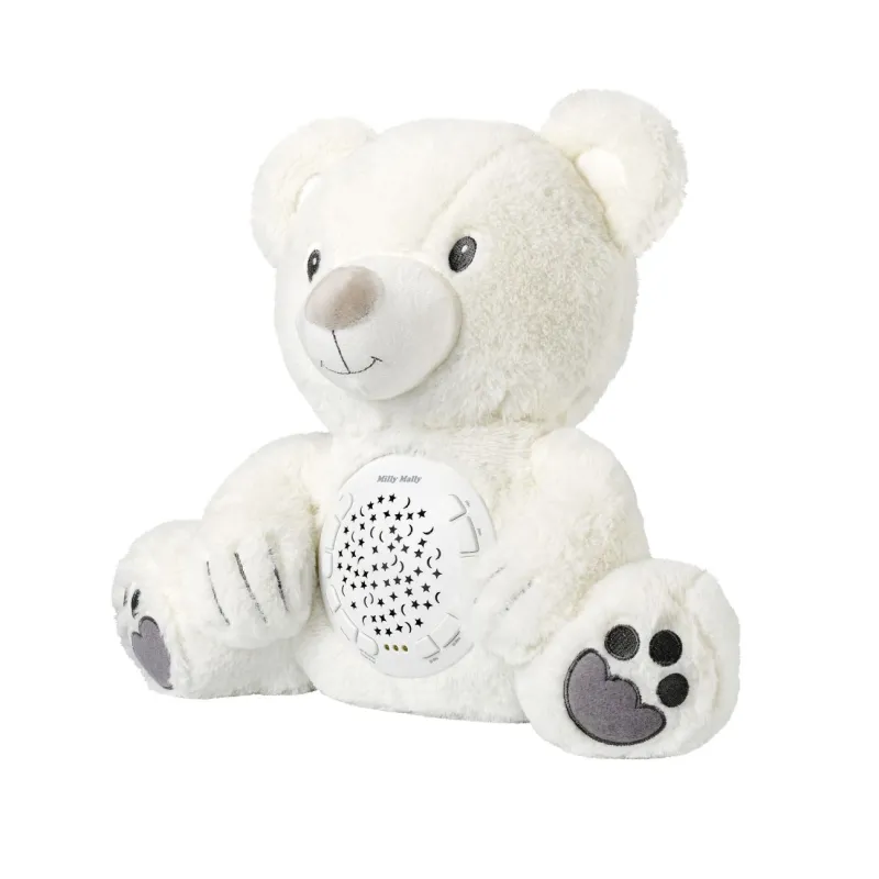 Milly Mally plīša lācis - projektors pārvērtīs jūsu bērna istabu par zvaigžņotām debesīm ar nomierinošām melodijām.