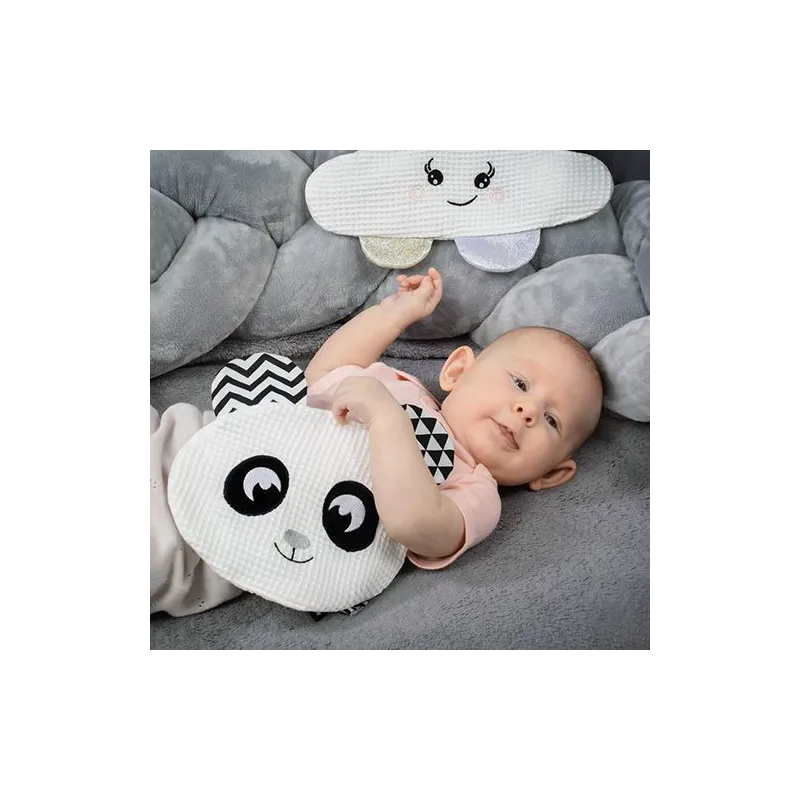 Čaukstošs miedziņš Priecīgā Panda. Tas ir rotaļlieta un miedziņš vienā. Piemērots bērniem no dzimšanas.