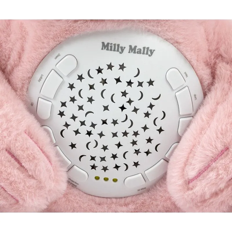 Milly Mally lācītis ir neaizstājams rīks vecākiem, kas palīdzēs nomierināt vai iemidzināt zīdaini. Ieslēdzot projektoru, jūs dzirdēsiet 10 nejauši izvēlētas šūpuļdziesmas melodijas, kā arī tiks attēlots nakts debesis.