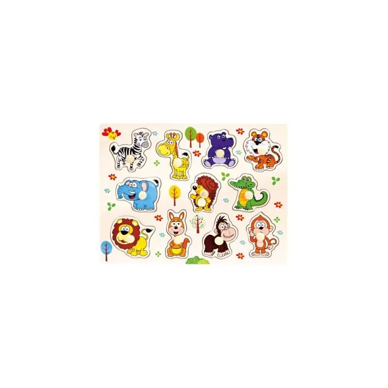 Koka attīstošā puzle ar rokturiem - lielisks līdzeklis, lai iepazīstinātu mazuli ar zooloģiskā dārza iemītniekiem.