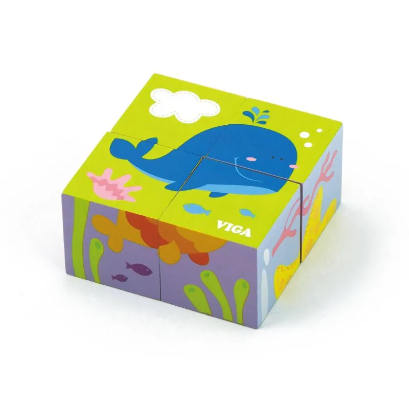 Koka puzles kubi ir lieliski piemēroti kraušanai, būvēšanai un skaitīšanai! Kopā ir 4 puzles daļas, kuras var salikt 6 dažādos jūras dzīvnieku attēlos.Katra detaļa ir piemērota izmēra, lai bērns to viegli satvertu. Pateicoties viegli tīrāmai virsmai, puzle izskatās kā jauna. Augstas kvalitātes attēli ir ļoti izturīgi.