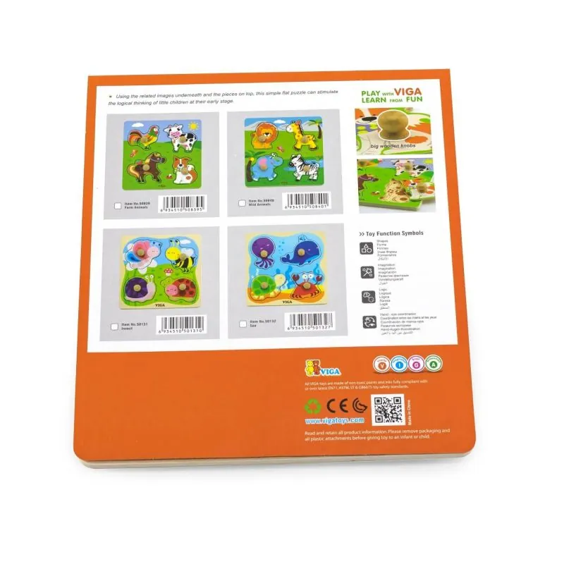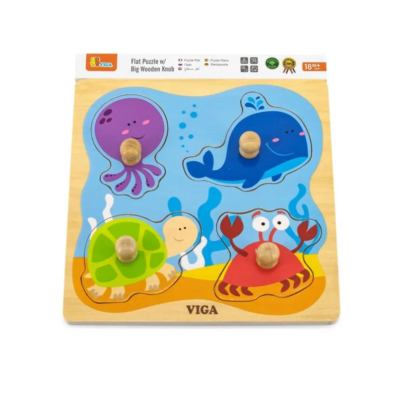 No pašiem agrīnajiem bērna gadiem ir svarīgi veicināt viņa attīstību, attīstot pamata domāšanas procesus;Pareiza attīstība šajā laikā garantē turpmākos panākumus pieaugušā vecumā;Viens no veidiem, kā apvienot spēli ar mācīšanos, ir puzles;Zinātniskie pētījumi apstiprina, ka bērni, kuriem patīk likt puzles, attīsta labākas telpiskās prasmes;Krāsainā "Viga" saimniecības puzle ar rokturiem ir lieliska rotaļlieta, kas ne tikai kalpos kā tradicionāla puzle, bet, galvenokārt, iepazīstinās bērnus ar pirmajiem okeāna dzīvniekiem: astoņkāji, vali, bruņurupuci un krabi;Šī skaistā puzle ir vienkārša, plakana, ar saistītiem attēliem apakšā un elementiem augšā, veicinot mazu bērnu loģisko domāšanu no ļoti agrīna vecuma;Puzles detaļas ir ar koka tapām, kas ļauj mazuļiem viegli satvert puzli un ievietot to pareizajā vietā uz koka pamatnes;Tas ir viens no labākajiem veidiem, kā attīstīt koncentrēšanos un acu un roku koordināciju;Šī rotaļlieta palīdz attīstīt bērnu motoriskās prasmes un loģisko domāšanu, apvienojot spēli ar mācīšanos;Spēlēšana kopā ir labākais veids, kā attīstīt iztēli, kas ir tik svarīga šajā vecumā, vienlaikus sagatavojot bērnu nākotnes pirmsskolas izglītībai;Visa rotaļlieta ir izgatavota no dižskābarža koka un krāsota ar netoksiskām, spilgtām krāsām, kas piesaistīs uzmanību un veicinās spēlēšanos, vienlaikus sniedzot daudz prieka;Paredzēts bērniem no 18 mēnešiem.