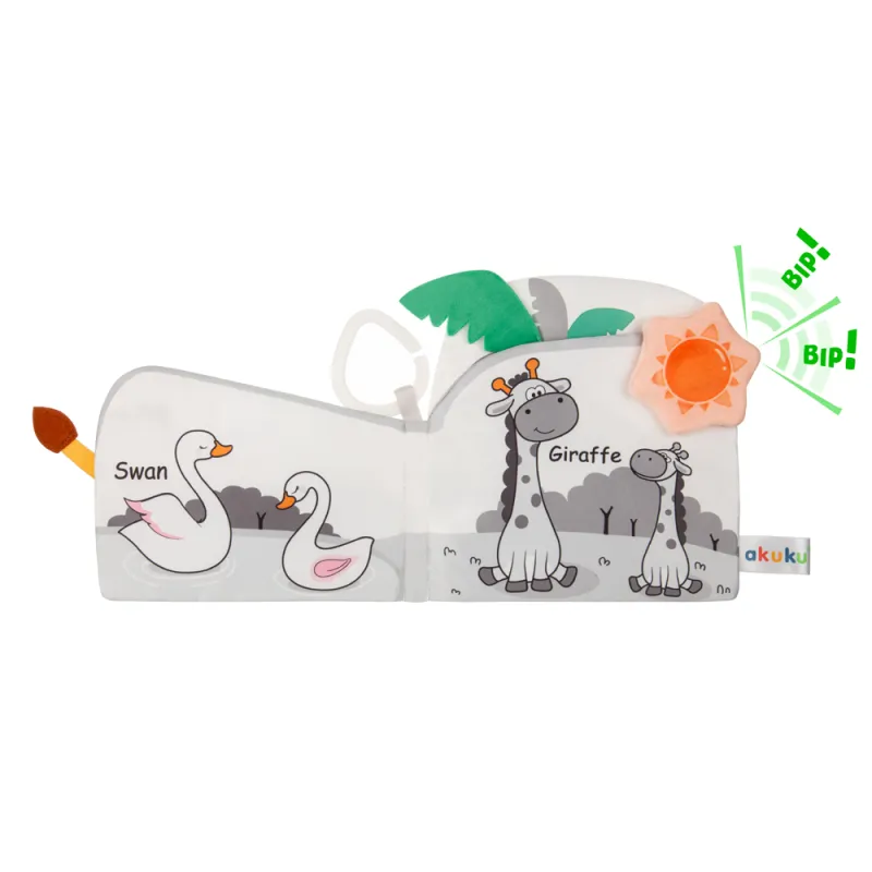Lūk, rotaļlieta, kuru iemīlēs jūsu mazulis – Zooloģiskā dārza sensorā grāmatiņa! Paredzēta bērniem no dzimšanas.