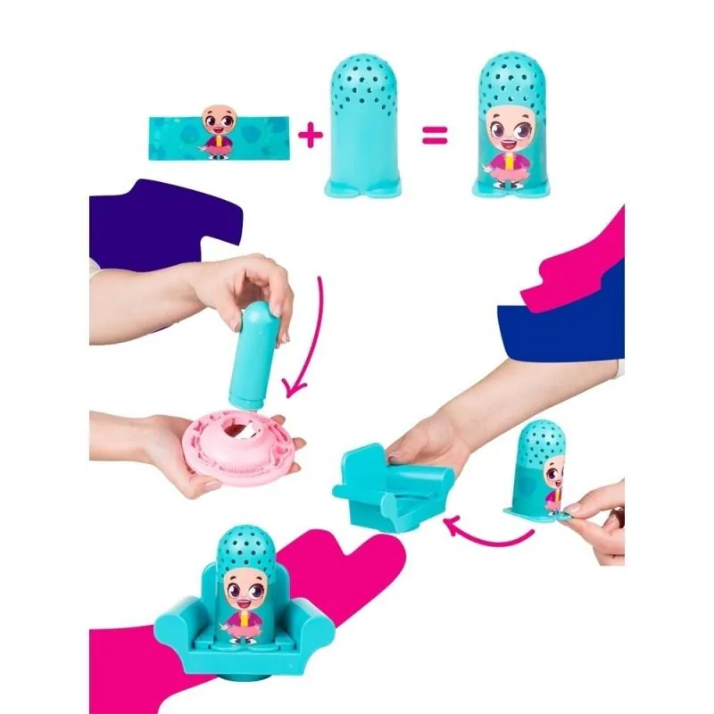 Kopumā ietilpst: modelēšanas māls 6 gab. pa 50g, stīpiņas 4 gab., šķēres, ķemme, krēsls-stends, figūriņas 2 gab., maisiņi 6 gab., figūriņas forma.