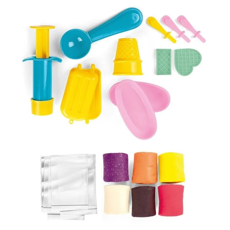 Kolekcija sastāv no: modelēšanas māls 6 gab., katrs pa 50g, 6 maisiņi, plastmasas piederumi.