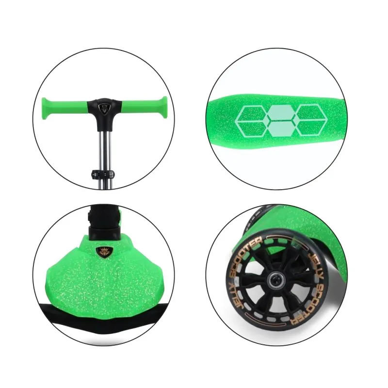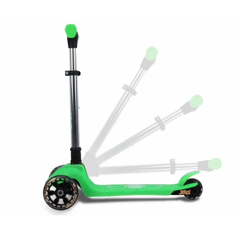 JELLY izceļas ar spīdošiem LED priekšējiem riteņiem un papildu platformas un garenisko līniju sānu apgaismojumu, kas kopā rada patiesi iespaidīgu gaismas šovu braukšanas laikā – ideāli piemērots vakara izbraucieniem! Spīdīgā apdare liek skrejritenim iespaidīgi mirdzēt saulē.