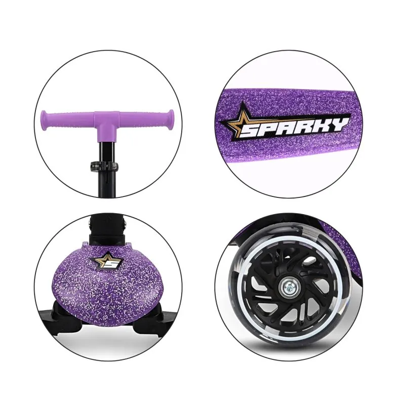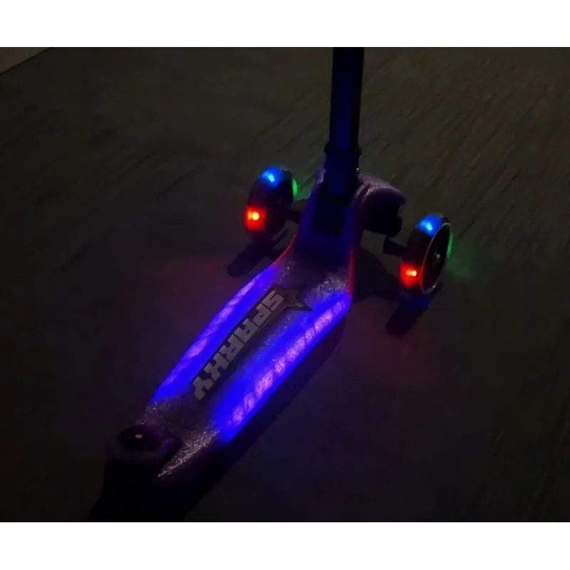 Sparky izceļas ar spīdošiem LED priekšējiem riteņiem, papildus platformas un garenisko līniju apgaismojumu, kas kopā rada patiesi iespaidīgu gaismas šovu brauciena laikā – lieliski piemērots vakara izbraucieniem! Spīdīgā apdare liek skrejritenim iespaidīgi mirdzēt saulē.