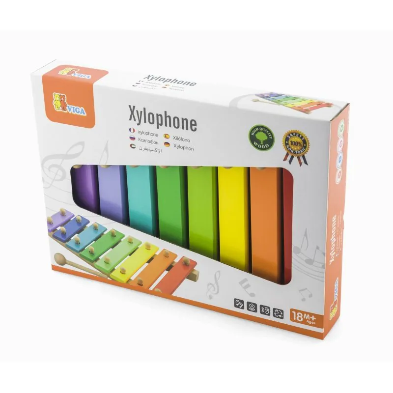 Koka ksilofons ir viena no vadošajām rotaļlietām, kas ne tikai kalpos kā tradicionāls instruments, bet arī ļaus bērnam iepazīties ar atsevišķu skaņu skanējumu. Šī rotaļlieta palīdzēs veidot roku kustību precizitāti un uzlabos acu un roku koordināciju. Krāsainie cimbāli priecēs acis un veicinās spēlēšanos. Spēlējiet ar "Viga" rotaļlietām, kas palīdz jūsu bērnam attīstīt loģisko domāšanu un motoriskās prasmes.Krāsas un tintes uz "Viga" rotaļlietām ir netoksiskas, drošas bērnam.Visas rotaļlietas atbilst Eiropas rotaļlietu drošības EN71 un ASTM standartiem.