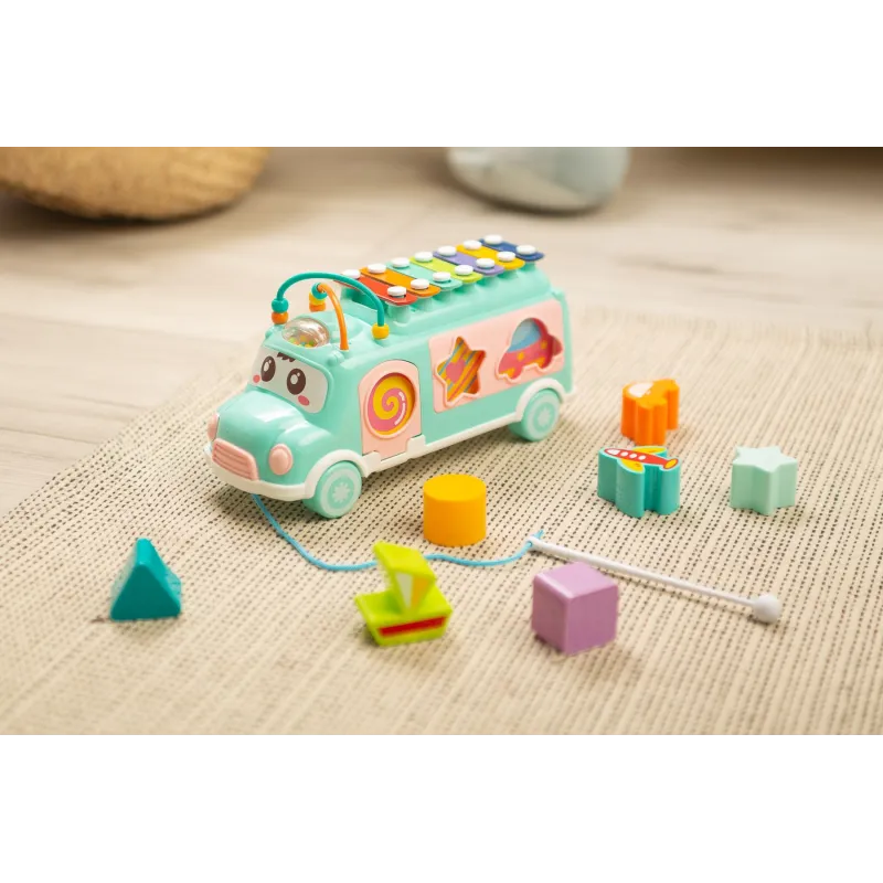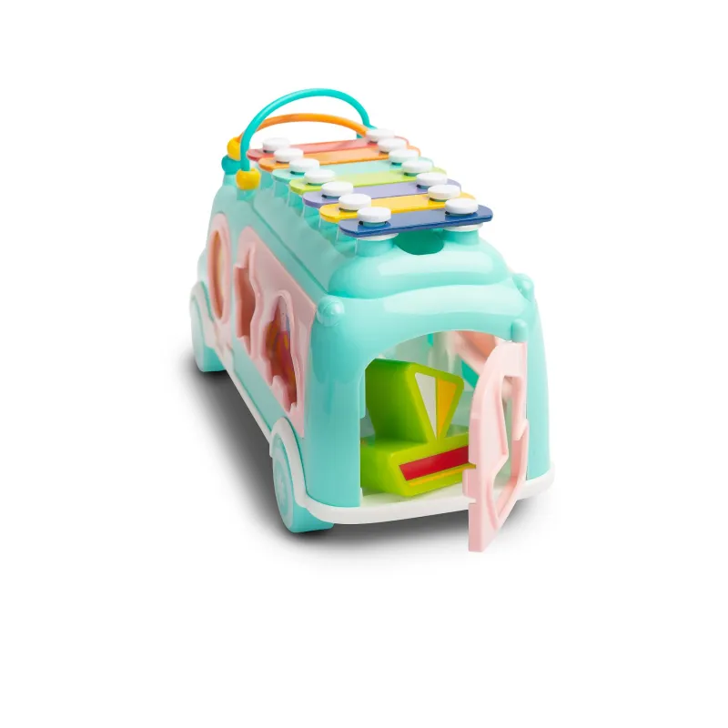 Autobusiņa riteņi rada skaņas, kas mudina spēlēties;