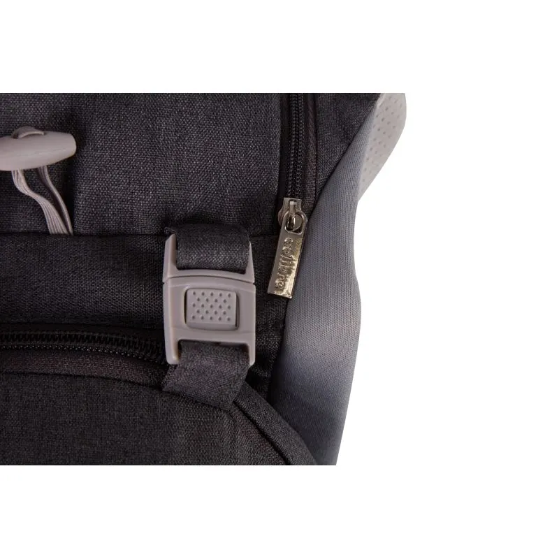 ANTI-SLIP SĒDEKLIS - gurnu sēdekļa virsma ir izgatavota no īpaša neslīdoša auduma. Turklāt sēdekļa pozīcija ir profilēta tā, lai tas vienmēr būtu nedaudz vērsts uz augšu, nodrošinot lielāku komfortu (kad bērnu pārnēsājamā siksna un gurnu siksna ir pareizi piestiprinātas);