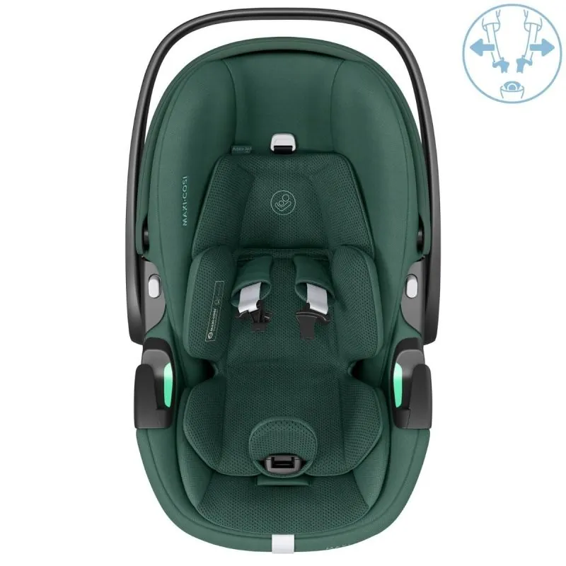 Maxi cosi auto sēdeklītis ar pilnībā guļošu pozīciju un ventilācijas sistēmu, piemērots no pirmajām mazuļa dienām.