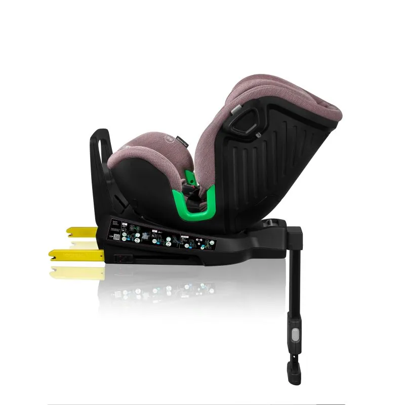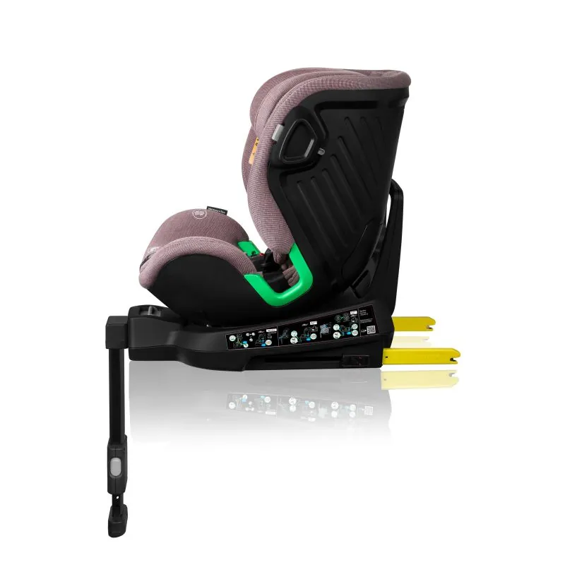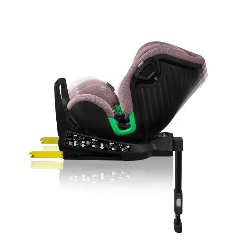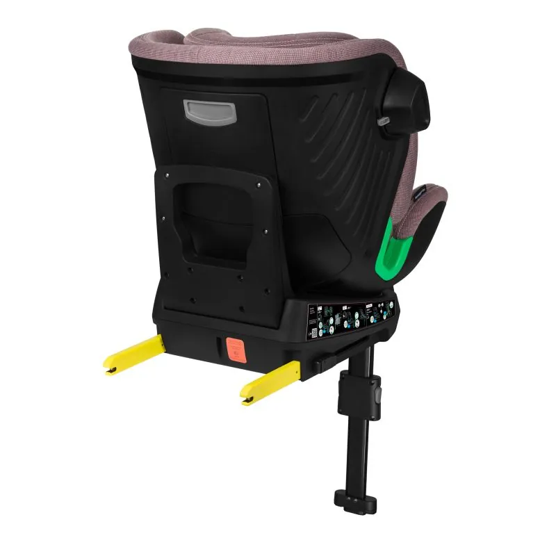 Izturīga un ātra autokrēsliņa uzstādīšana automobilī ar ISOFIX sistēmu un stabilizējošu kāju, kas vienmērīgi sadala svaru pēkšņas bremzēšanas laikā. Pateicoties kājai, sēdeklis viegli griežas dažādās pusēs.