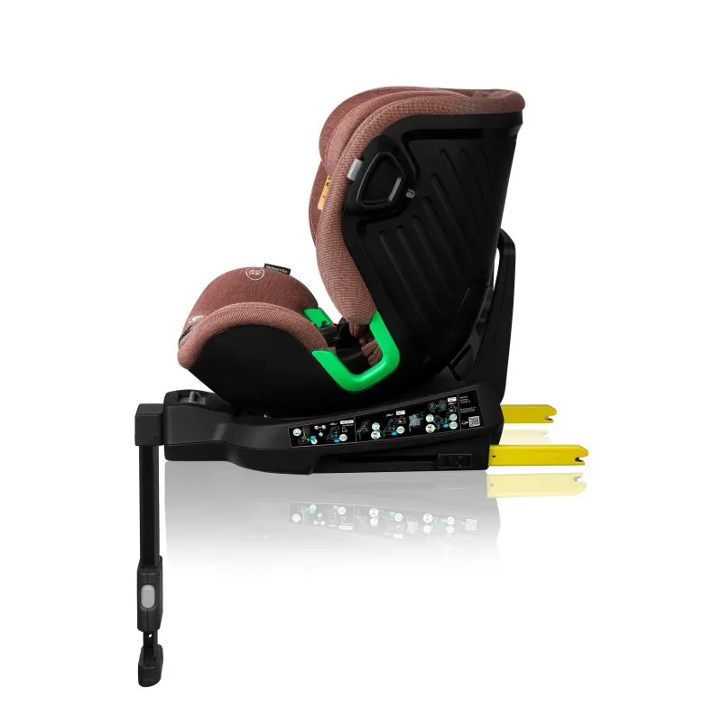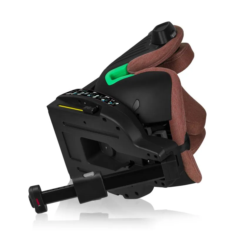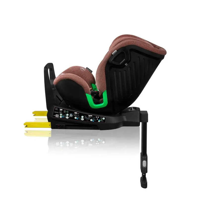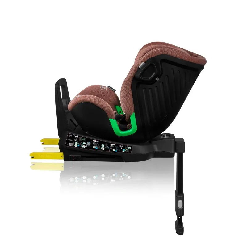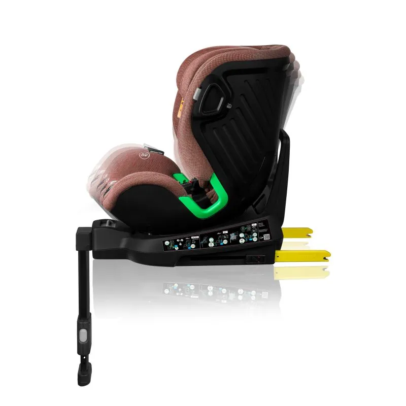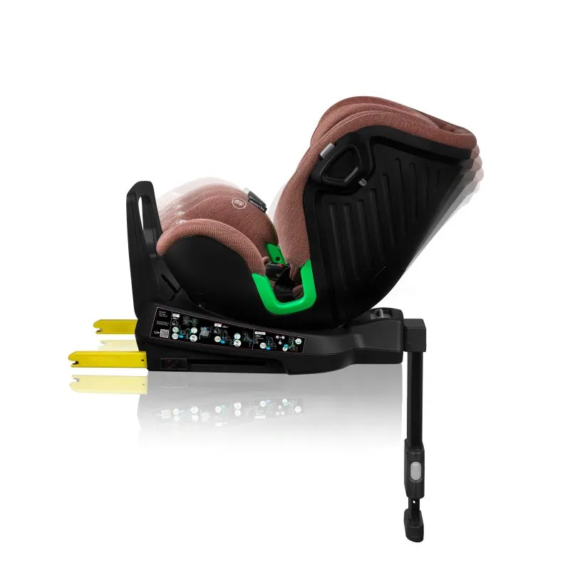 Izturīga un ātra autokrēsliņa uzstādīšana automobilī ar ISOFIX sistēmu un stabilizējošu kāju, kas vienmērīgi sadala svaru pēkšņas bremzēšanas laikā. Pateicoties kājai, sēdeklis viegli griežas dažādās pusēs.