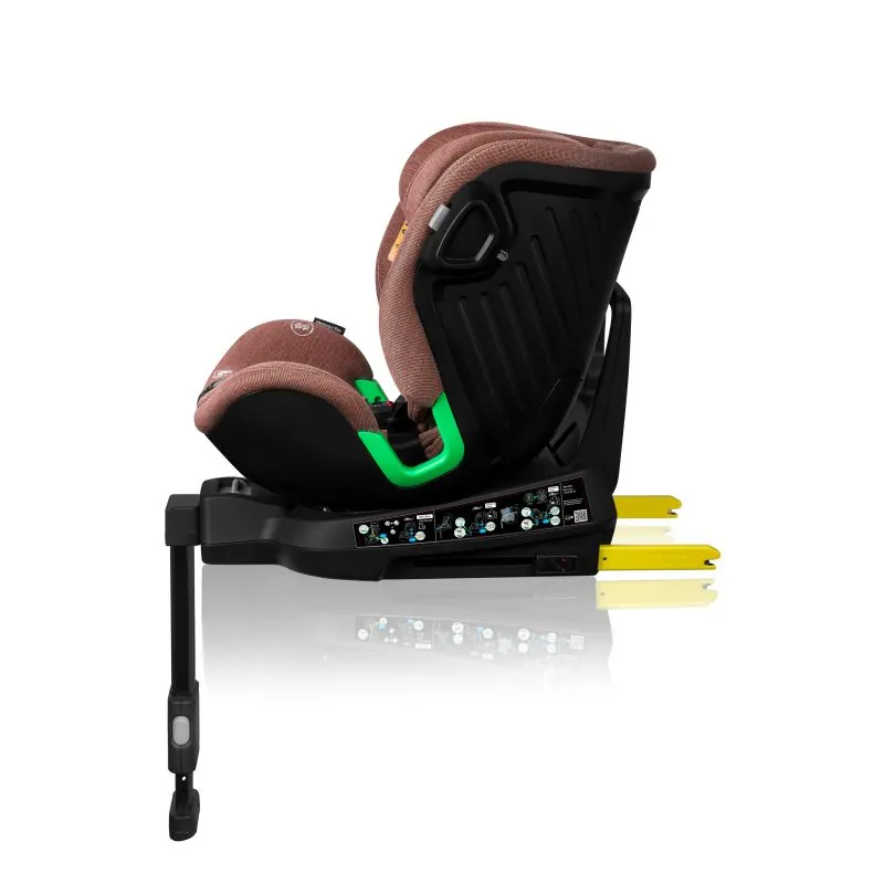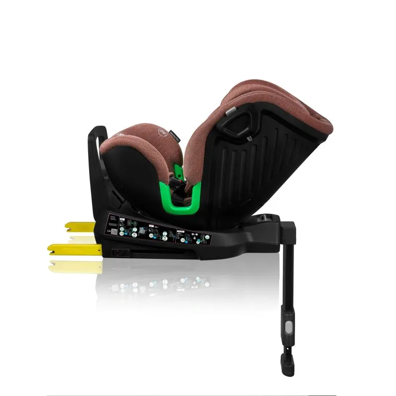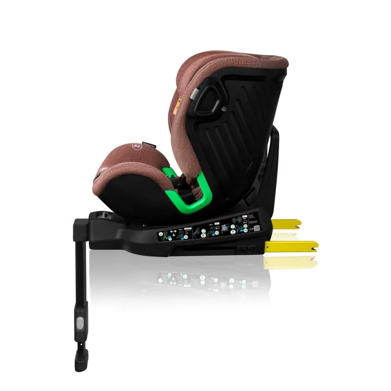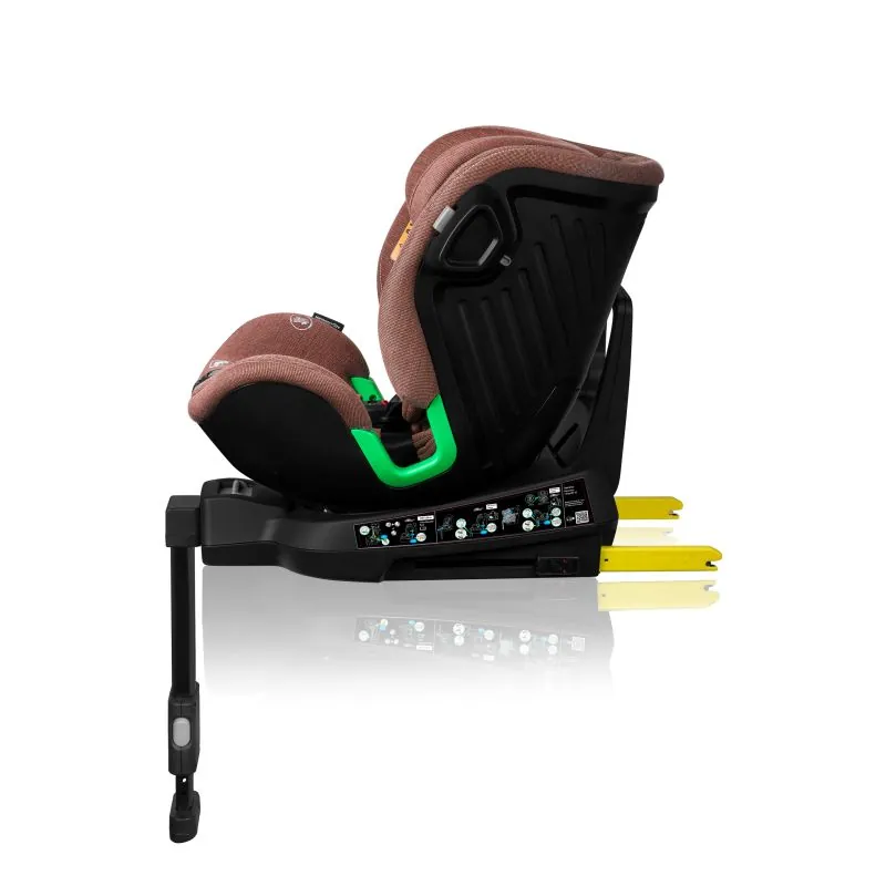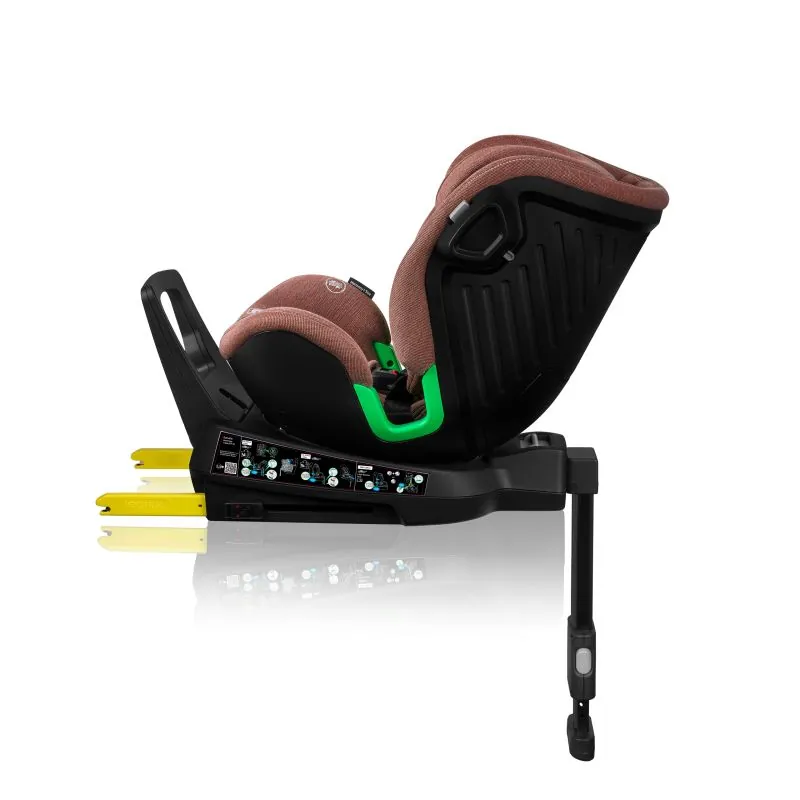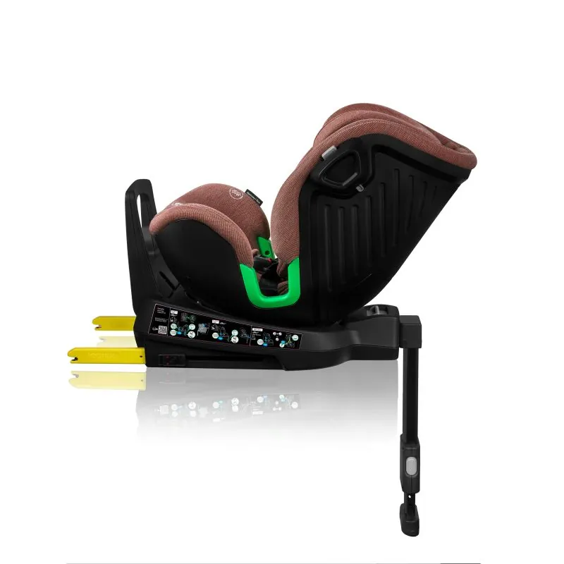 Izturīga un ātra autokrēsliņa uzstādīšana automobilī ar ISOFIX sistēmu un stabilizējošu kāju, kas vienmērīgi sadala svaru pēkšņas bremzēšanas laikā. Pateicoties kājai, sēdeklis viegli griežas dažādās pusēs.