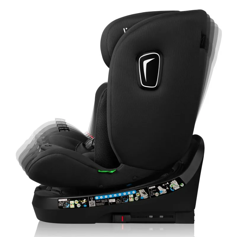 360° rotējošs IsoFix, kas ļauj sēdekli nostiprināt pret un braukšanas virzienā;