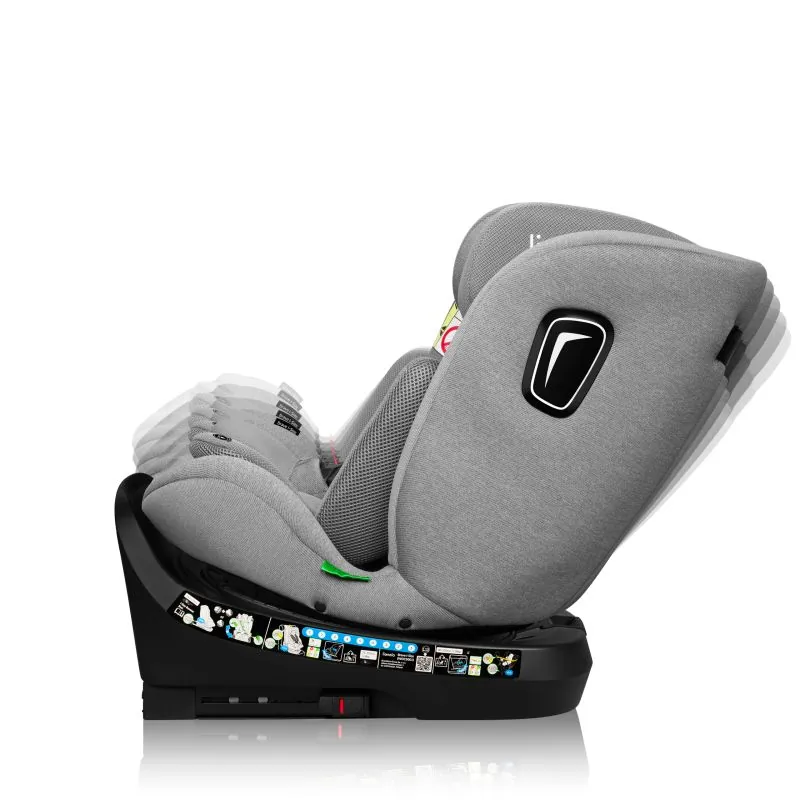 360° rotējošs IsoFix, kas ļauj sēdekli nostiprināt pret un braukšanas virzienā;