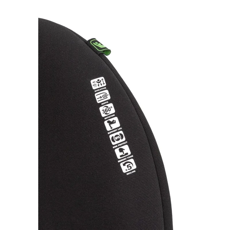Automašīnas sēdeklis, kas griežas 360 grādos. Paredzēts bērniem no 40 līdz 150 cm. I-size standarts.