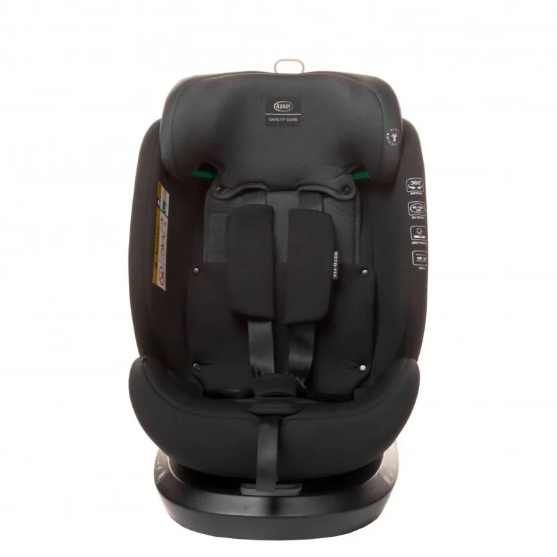 Automašīnas sēdeklis ar isofix sistēmu, kas griežas 360 grādu leņķī, paredzēts bērniem no 40 līdz 150 cm.
