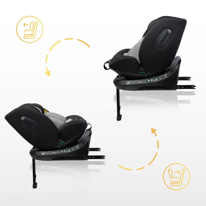 Automašīnas sēdeklis, kas griežas 360 grādos. Paredzēts bērniem no 40 līdz 150 cm. I-size standarts.
