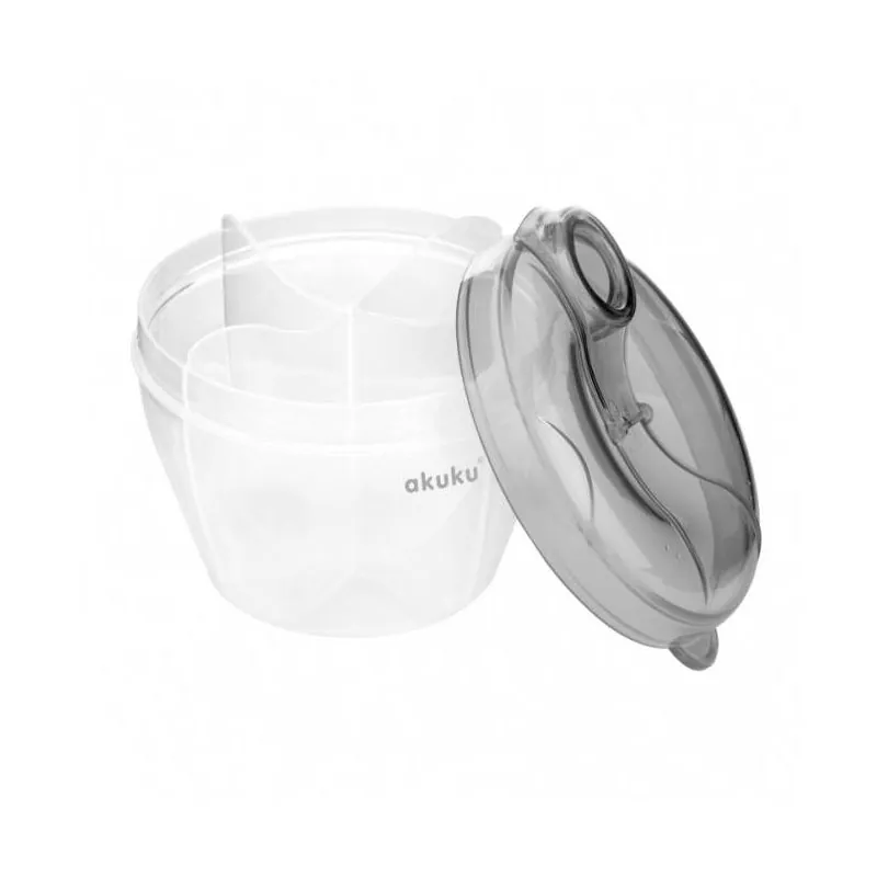 Akuku trauksmes-deva piena maisījumam un sausajiem putraimiem. Šajā ērtajā devējā ir 4 nodalījumi. Katrā var ieliet vienas ēdienreizes piena maisījuma pulvera vai graudu normu. Pirms ēdienreizes atliek tikai atvērt un iebērt pulveri pudelē ar vārītu atdzesētu ūdeni vai no graudu normas pagatavot putru.