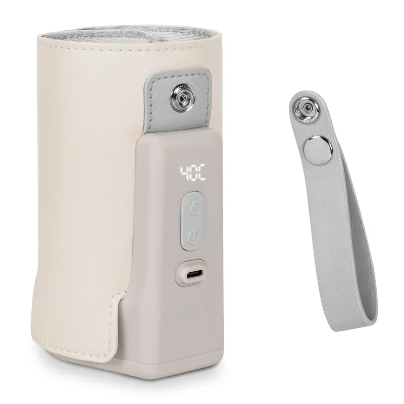 Izturīgs un patīkams pieskārienam ādas panelis ļauj dzert pienu no pudelītes, kas pārklāta ar sildītāju, kas uztur pastāvīgu piena temperatūru ziemas pastaigu laikā. Ērtu turētāju var piestiprināt pie somas vai ratiņu rāmja. Pieskaņotās krāsas saskan ar citiem moderniem aksesuāriem.