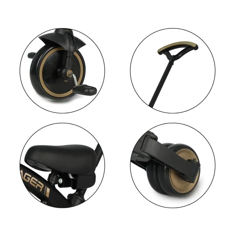 Stabilā trīsriteņu konstrukcija sniedz bērnam atbilstošu drošības līmeni un atvieglo jaunu prasmju apguvi.