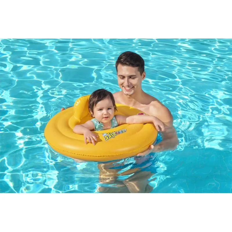 Šis pripučiamas ratas skirtas padėti jūsu bērnam apgūt peldēšanas un baseina drošības pamatus, ļaujot viņiem pierast pie atrašanās ūdenī ar papildu komfortu un nepieciešamo atbalstu. Autiņbiksīšu formas dibens ļauj jūsu mazulim ielīst kājām caur caurumiem ūdenī un sēdēt, kamēr viņi peld ūdenī.Bestway® Swim Safe ABC sākas ar "Step A", kas paredzēts zīdaiņiem un maziem bērniem, kuriem nepieciešams maksimāls atbalsts. "Step B" vestes ir paredzētas mazajiem, kuri sāk iegūt pārliecību, bet vēl nemāk patstāvīgi peldēt."Step C" jostas – bērniem, kuri sāk apgūt peldēšanas pamatus.Produkts paredzēts 0-1 gada vecuma grupai.