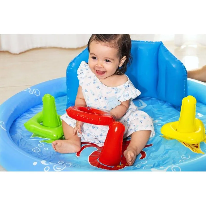 Ūdens tilpums: 31 L;Noņemams UV Careful™ piepūšams saules aizsargs drošai izklaidei saulē;Atbalsta atzveltne;Krāsu un formu saskaņošanas spēle, kas ļauj trenēties sēžot, rāpojot un stāvot;Izplūdes vārsts;Komplektācija: 1 baseins, 3 gredzeni, 1 vāciņšParedzēts bērniem no 2 gadiem