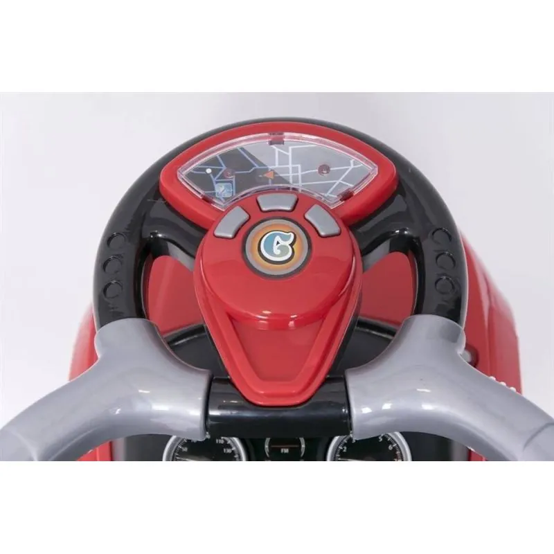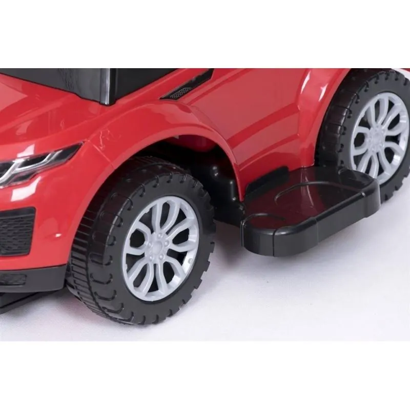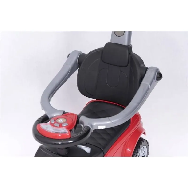 Droša, izturīga un kvalitatīva mašīnīte ar trim pogām, kuras nospiežot, mašīnīte izdos skaņas.Šai mašīnītei ir aizsardzība pret sānu un atpakaļejošu apgāšanos, kājiņu paliktņi un rokturis mašīnītes stumšanai. Šos piederumus varēs noņemt, kad bērns vēlēsies braukt ar mašīnīti pats.Rotaļlieta ir droša un kvalitatīva.Veicina mazuli kustēties.Augsts atzveltne bērnam nodrošina ērtu un drošu pozīciju.Rotaļlietu glabāšanas kaste.Buferi, kāju balstu un stumšanas rokturi var noņemt;Izturīga konstrukcija nodrošina ilgu braukšanu;Var izmantot gan telpās, gan ārā;Maksimālais bērna svars: 27 kg;Paredzēts bērniem: no 24 mēnešiem;Izmēri: 75x44x82 cm.